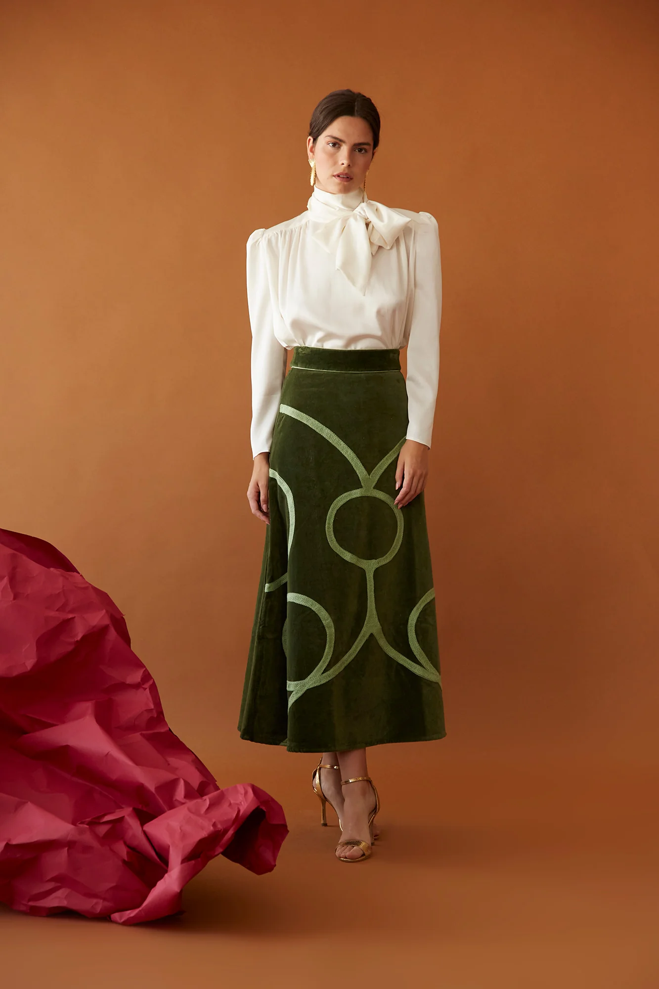 Esta camisa blanca de estilo romántico es una apuesta infalible para looks elegantes y sofisticados. Confeccionada en tejido fluido de alta calidad, destaca por su lazada al cuello tipo lazo y sus mangas abullonadas, que aportan volumen y un aire refinado. El diseño combina inspiración vintage con un corte actual, ideal para llevar con faldas midi o pantalones de tiro alto.